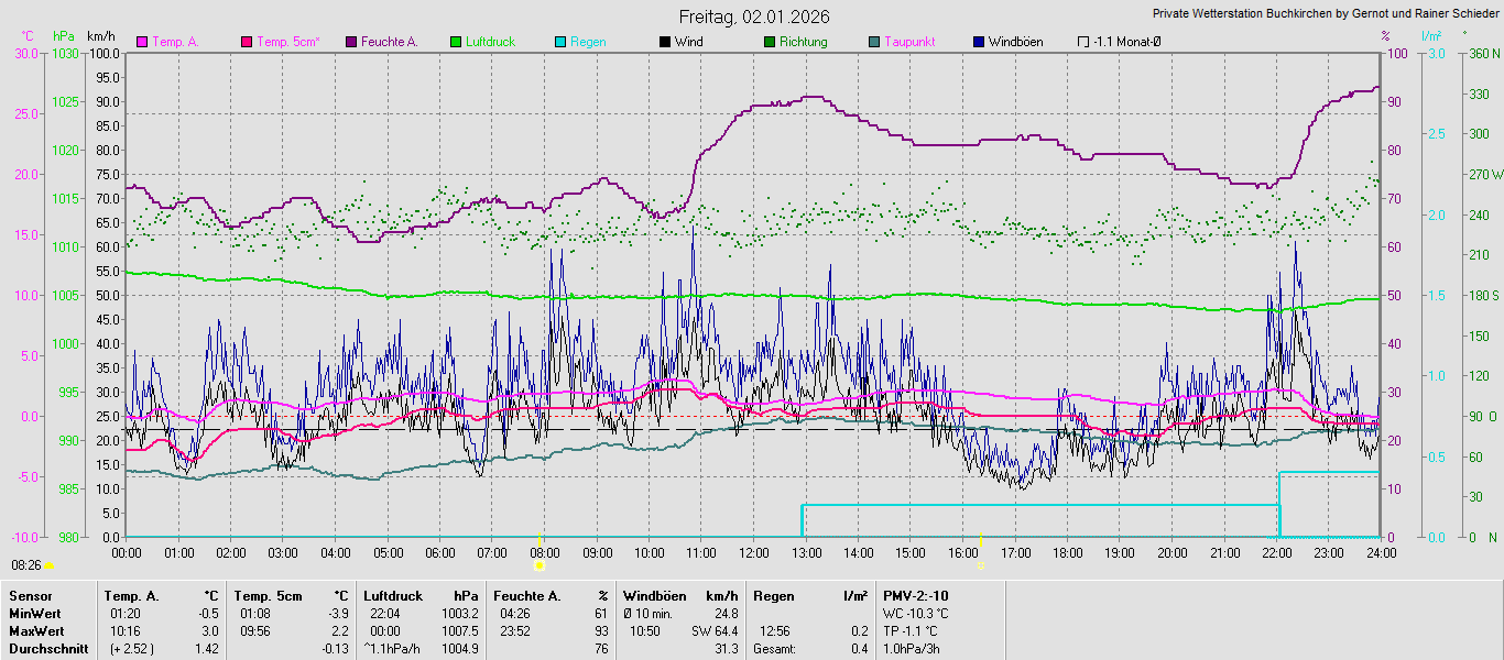 Jahresgrafiken der einzelnen Sensoren 2026