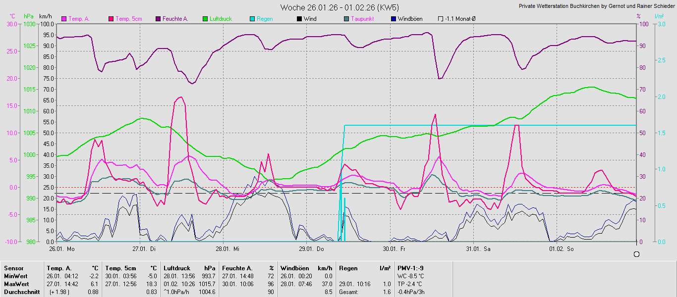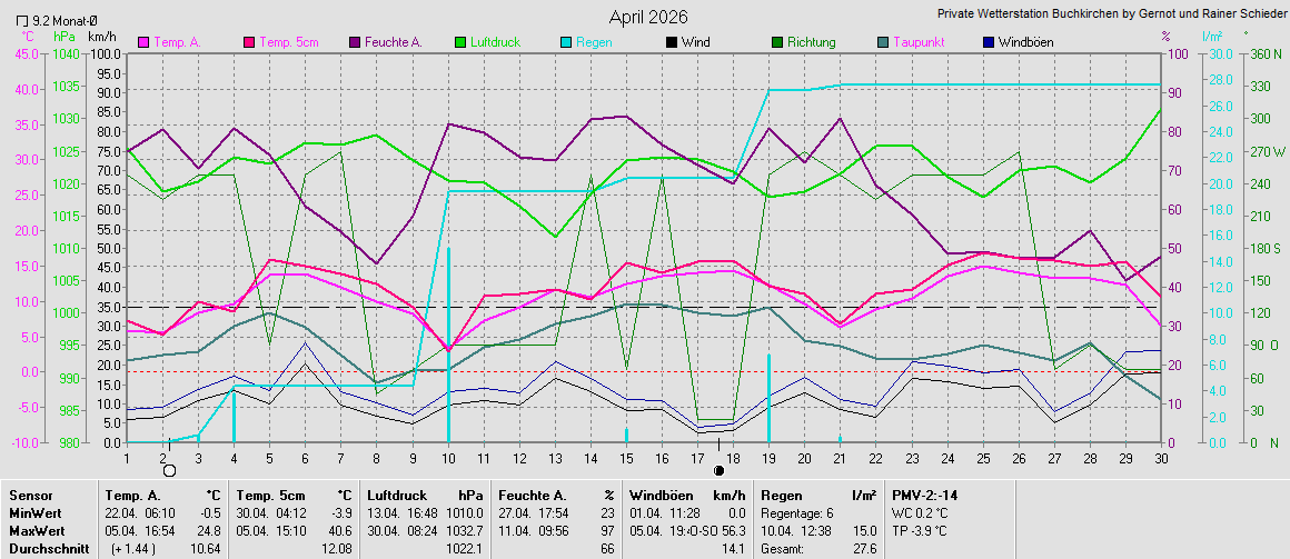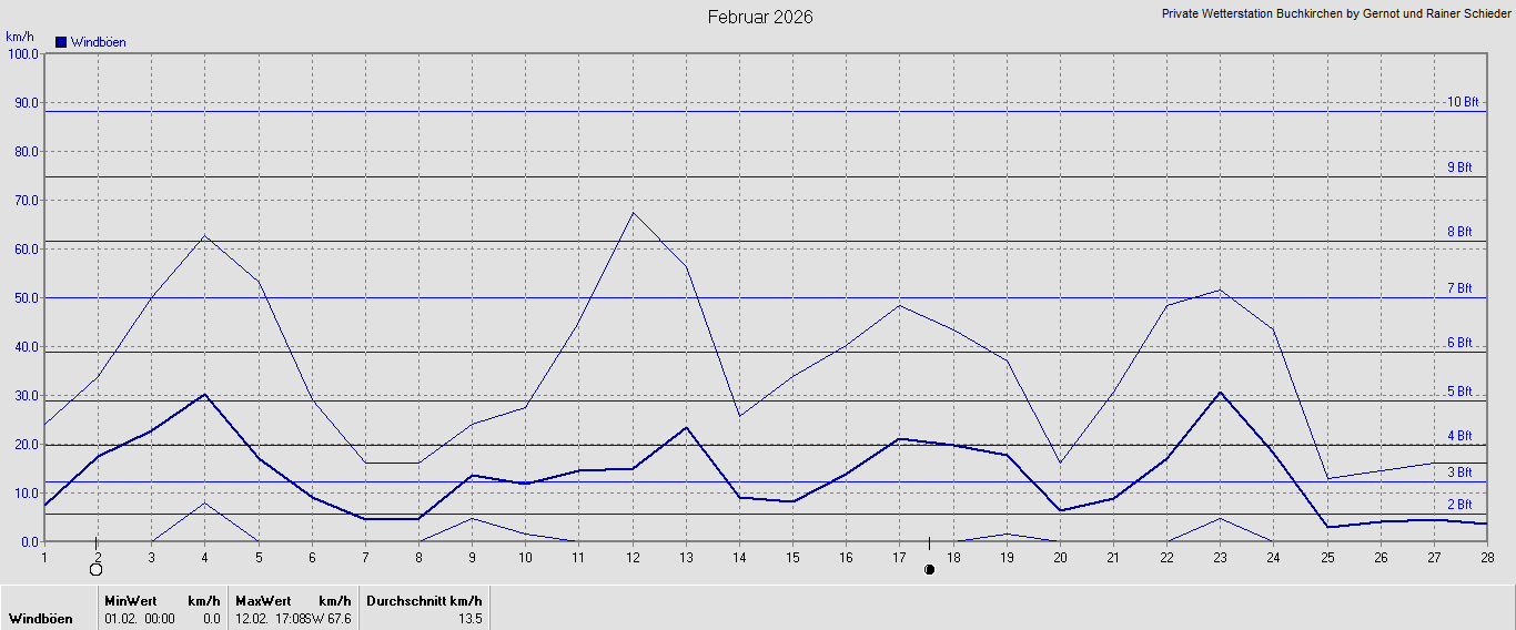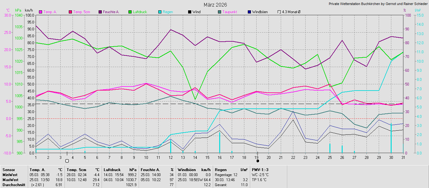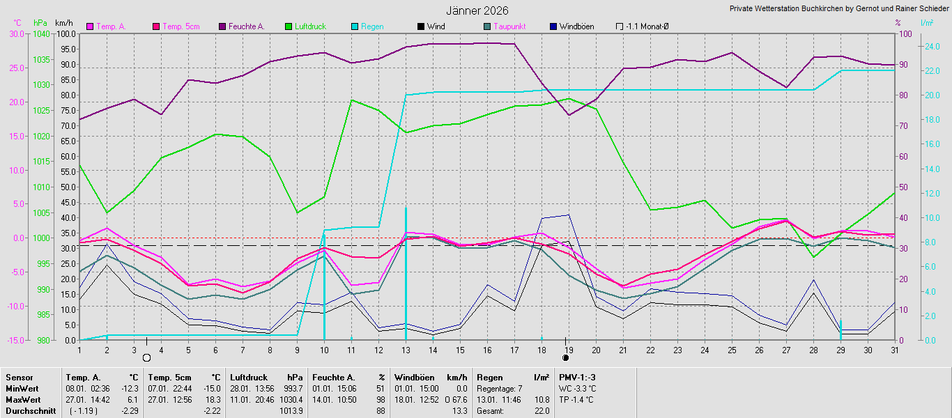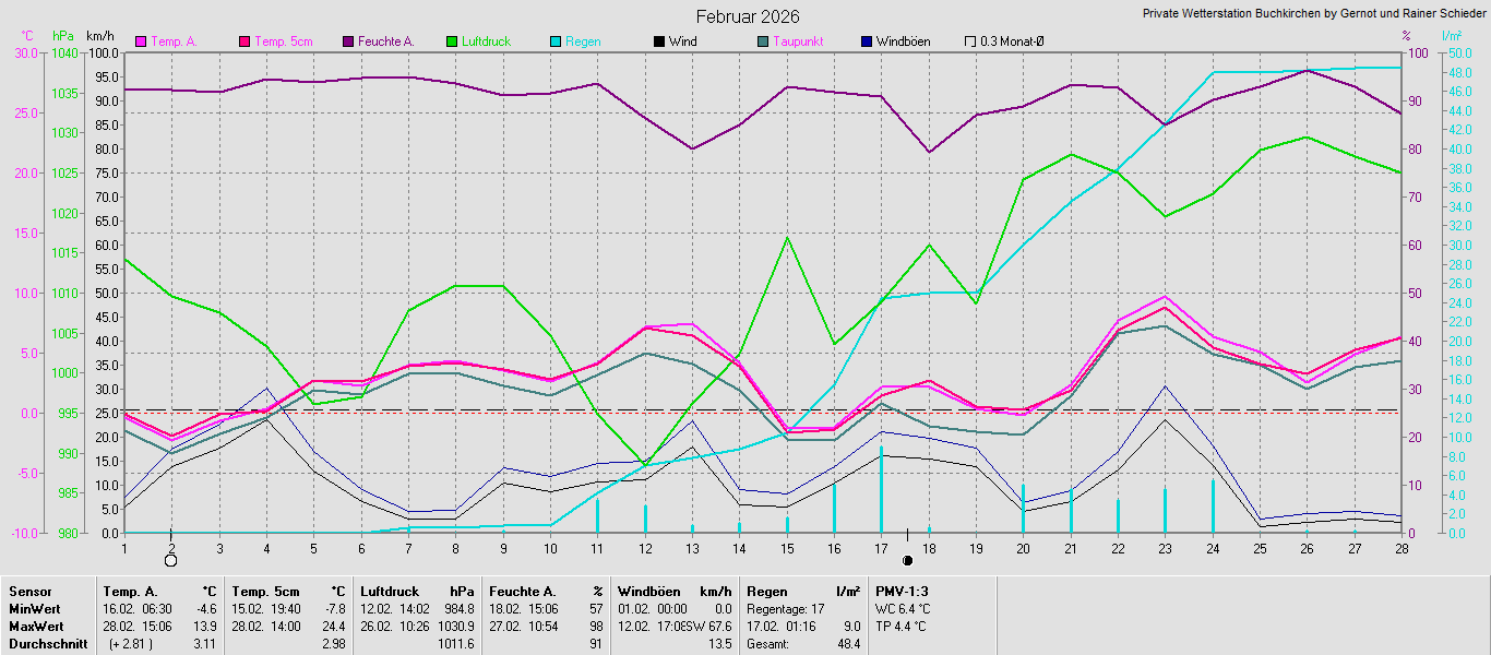 Monatsgrafiken der einzelnen Sensoren 2026