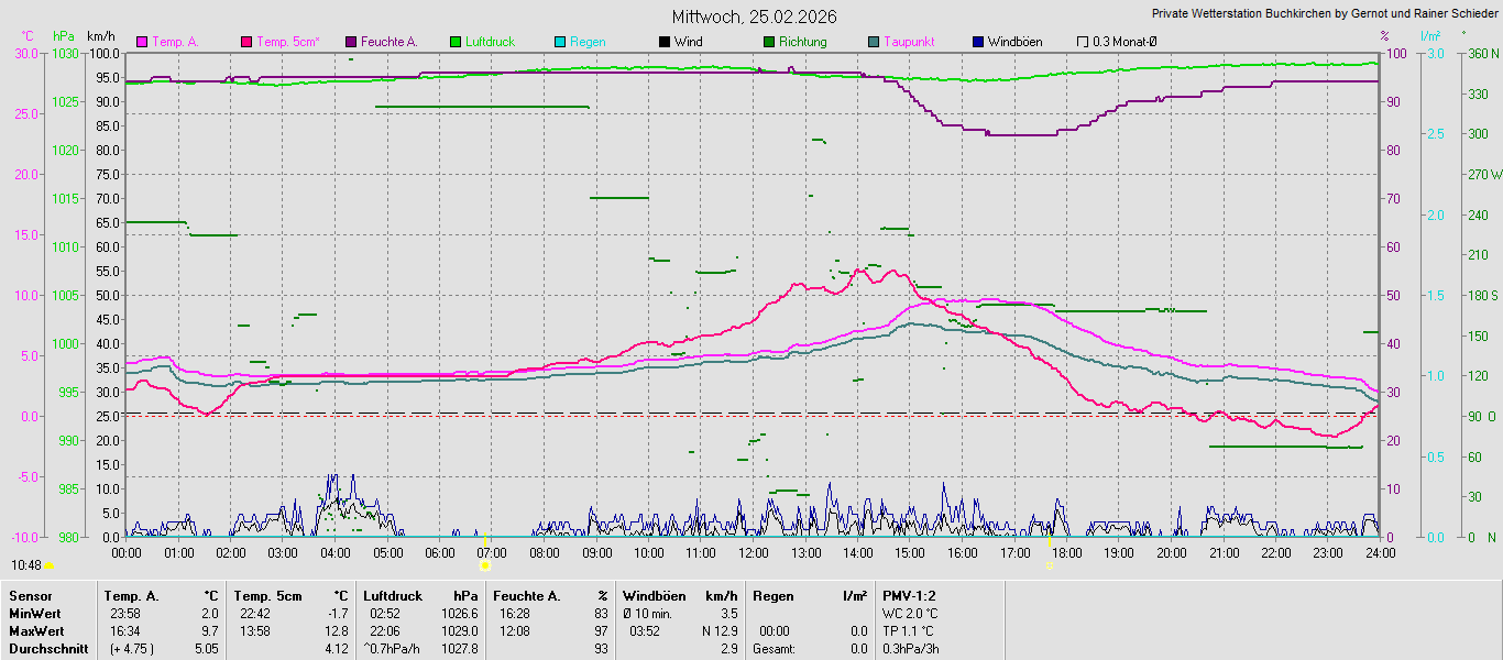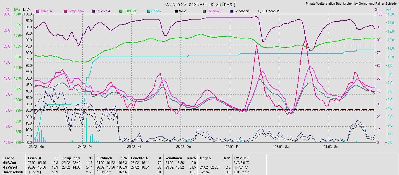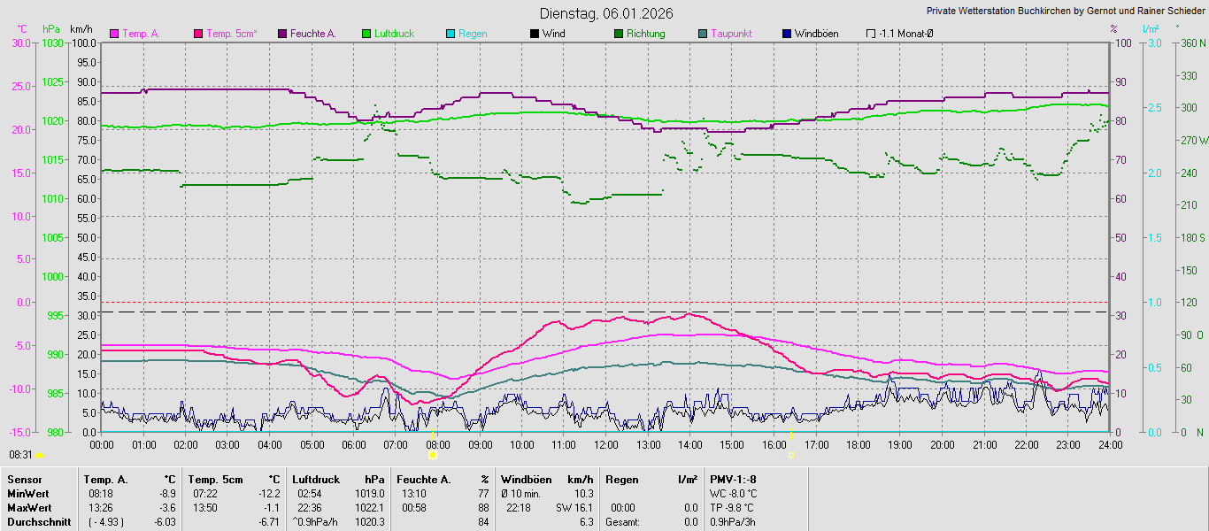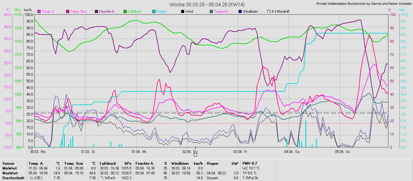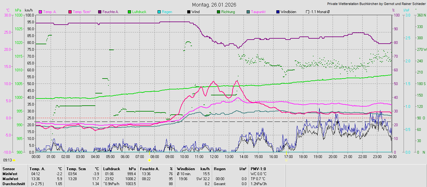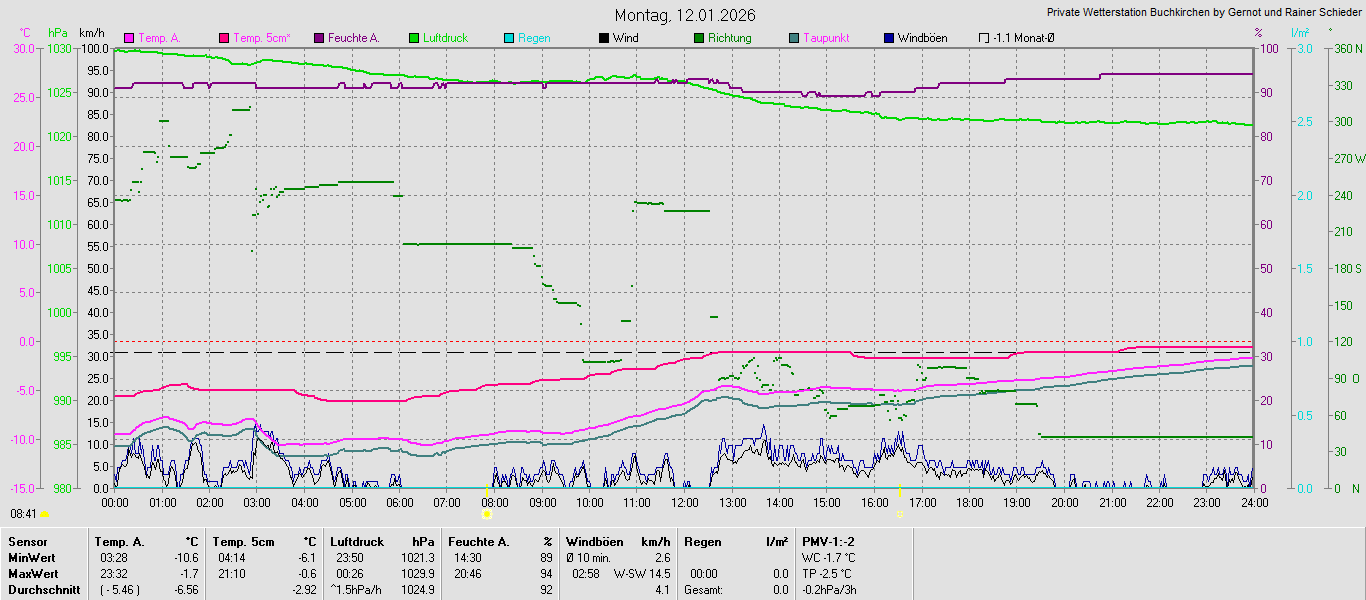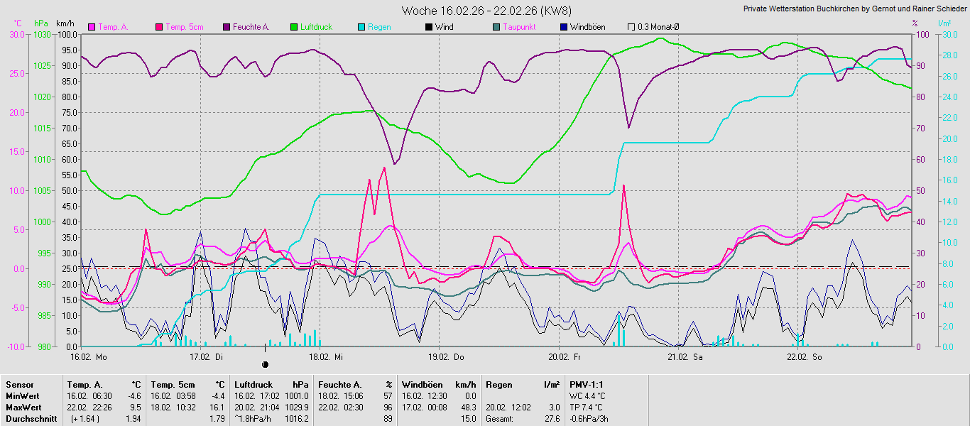 Monatsgrafiken der einzelnen Sensoren 2026