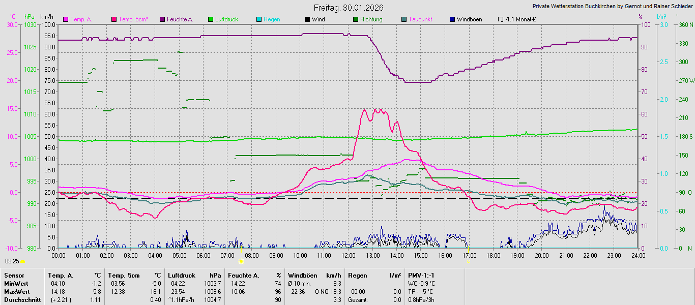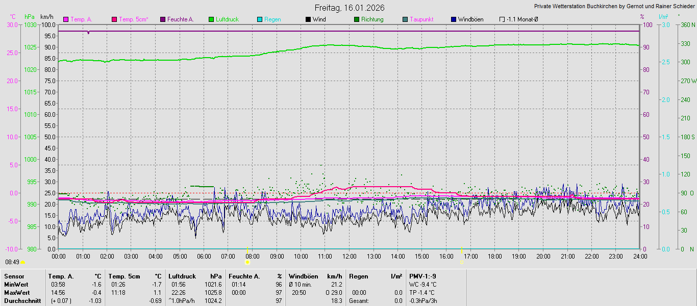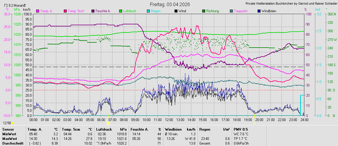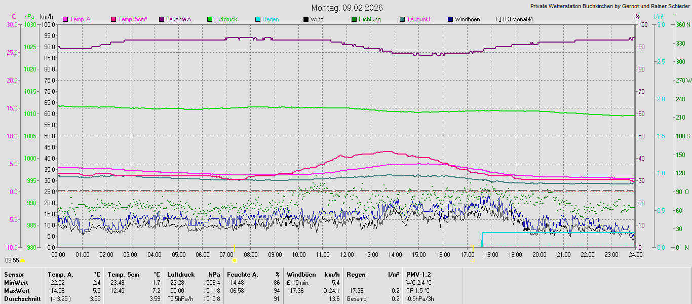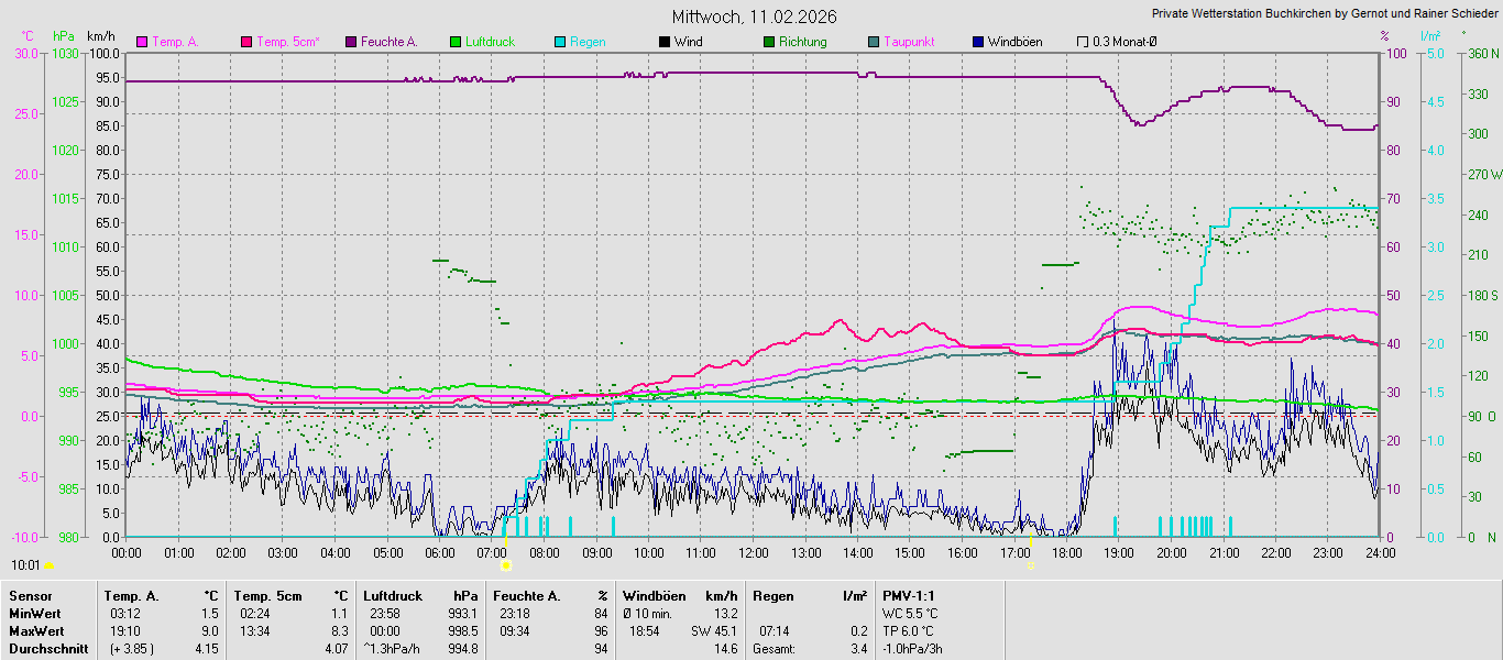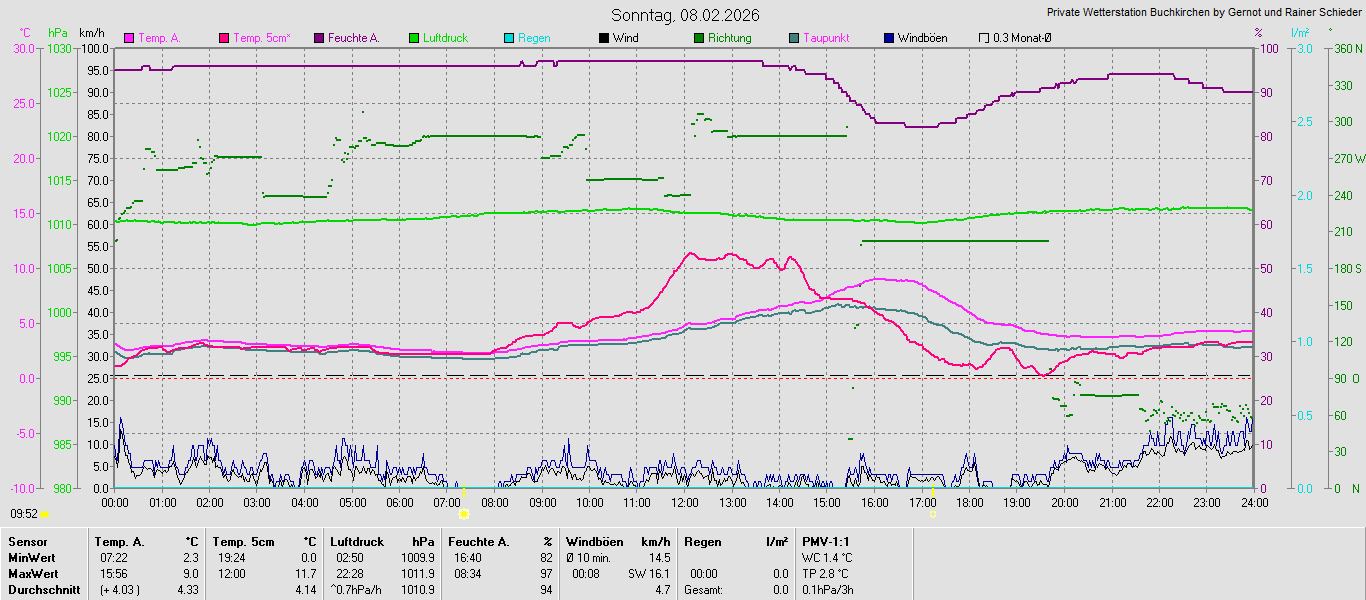 Monatsgrafiken der einzelnen Sensoren 2026